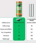 - Hafif gazlı, şeftali aromalı bu enerji içeceği, Japonya'nın dağlarından gelen ceremonial grade matcha ile üretilmiştir.